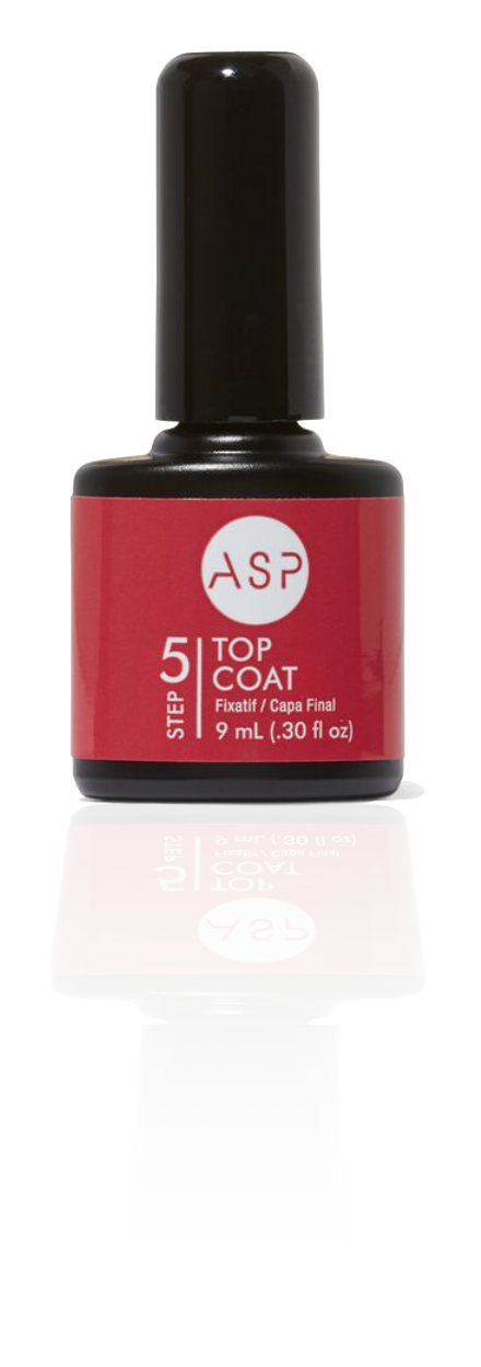 ASP Soak Off Gel Polish Top Coat is used as a final coat for ASP Soak Off Gel Polish Manicures to lock in the color and shine.
